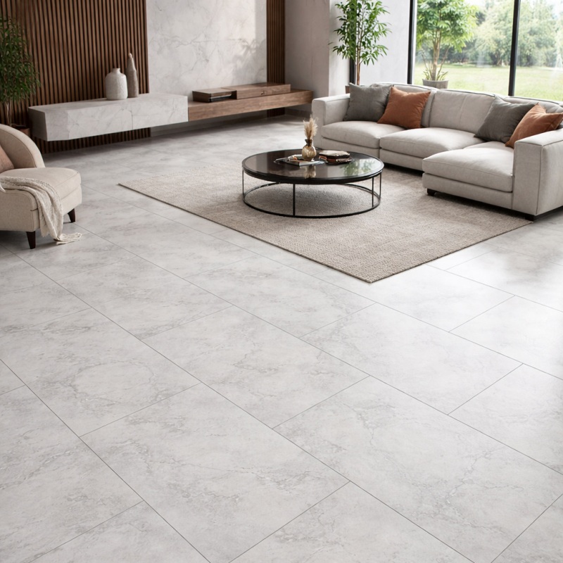 The 600x1200mm size reduces visible grout lines, creating a more continuous and smooth floor surface. This larger format helps make rooms appear more open and spacious. It is ideal for both residential and commercial projects that require expansive floor coverage.