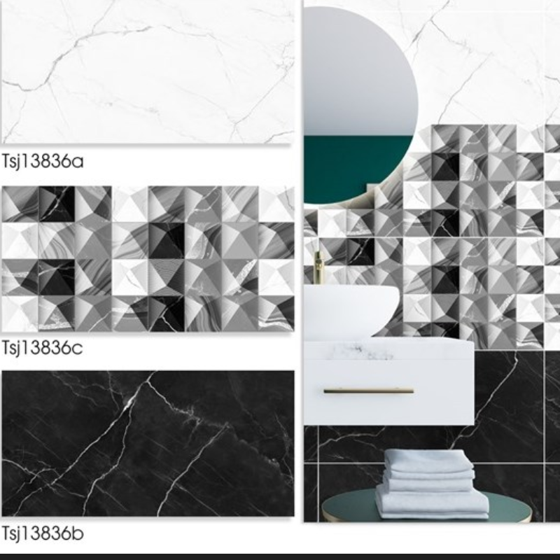 Material: Common options for bathroom tiles include ceramic, porcelain, natural stone (such as marble or granite), and glass. Each material has its own characteristics, so select one that fits your requirements.