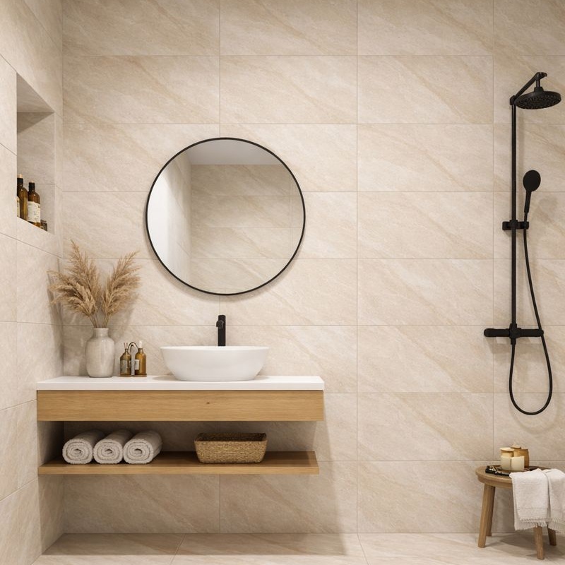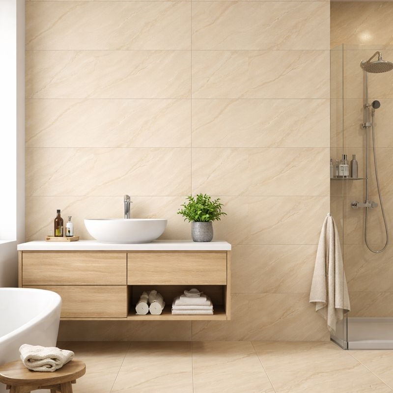 The porcelain body offers stable structure and consistent thickness for wall installation. Each tile is produced with controlled firing to ensure uniform quality. This supports smooth installation and predictable project results.