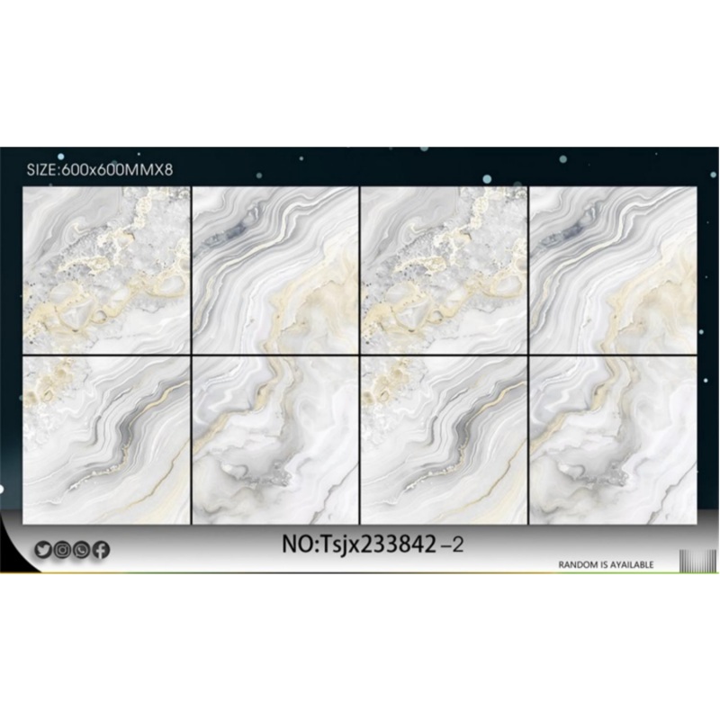 This product is designed to solve common interior decoration problems such as dull surfaces, weak visual impact, and easy staining by combining a marble-inspired pattern with elegant gold vein details and a polished finish. It helps enhance space brightness, improve surface durability, and maintain a refined appearance over long-term use. It is widely applied in living rooms, hotels, apartments, villas, shopping malls, and commercial interior wall and floor projects.