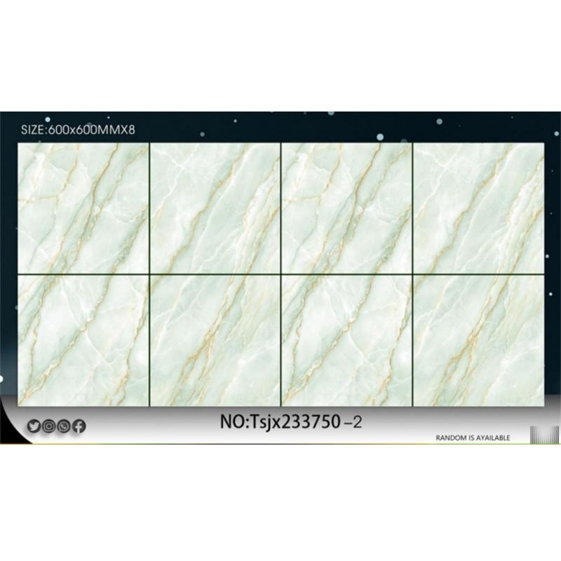 This ceramic tile features a high-gloss surface with refined white or green tones, designed to enhance brightness and visual clarity in interior spaces. It address issues such as dull flooring, uneven color presentation, and limited light reflection in decorative environments. The tile is suitable for use in residential and commercial areas, including living rooms, shopping spaces, hotels, and reception halls.