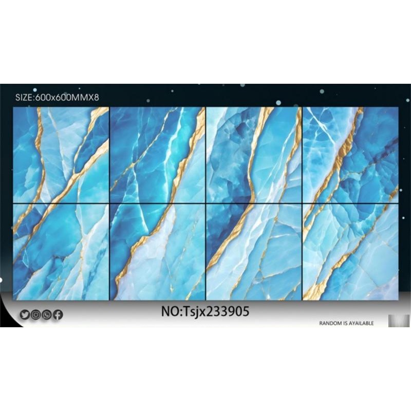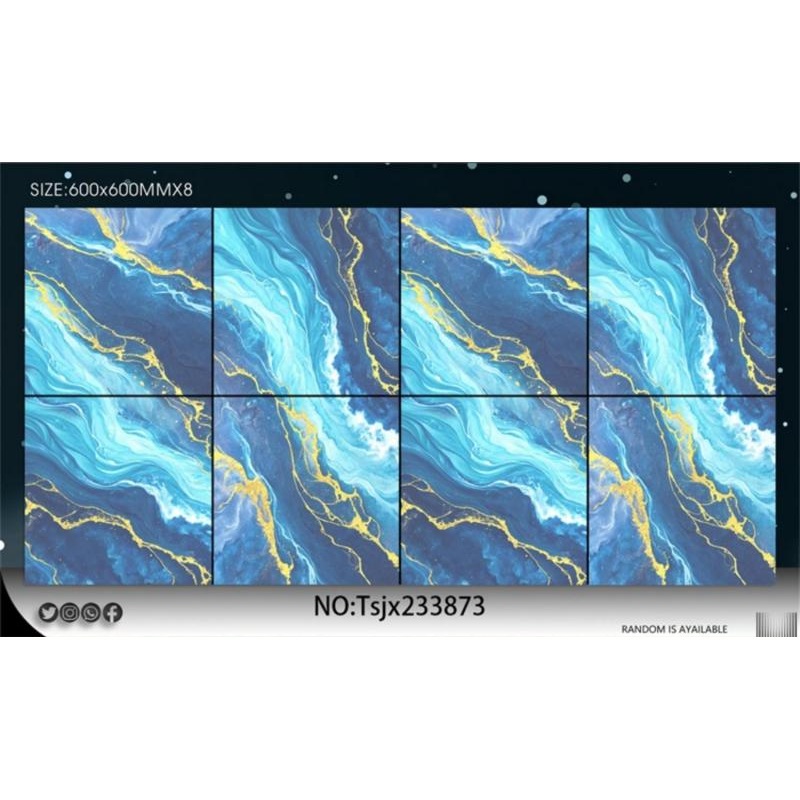 The blue base combined with vein-style detailing creates a distinctive decorative look. It helps add contrast and visual interest to the flooring design. This color style suits a variety of contemporary interiors.