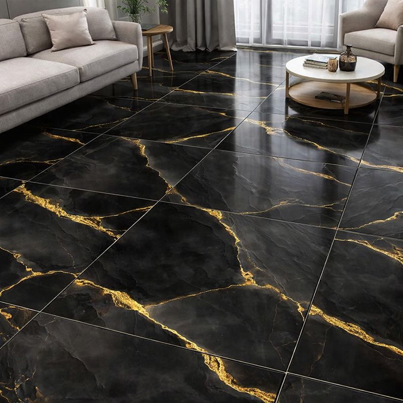 This collection presents a rich marble-inspired appearance highlighted by gold-toned veining and a smooth polished surface. The glossy finish enhances light reflection, adding depth and elegance to interior spaces. It is well suited for residential and commercial interiors seeking a refined and visually striking floor or wall solution.