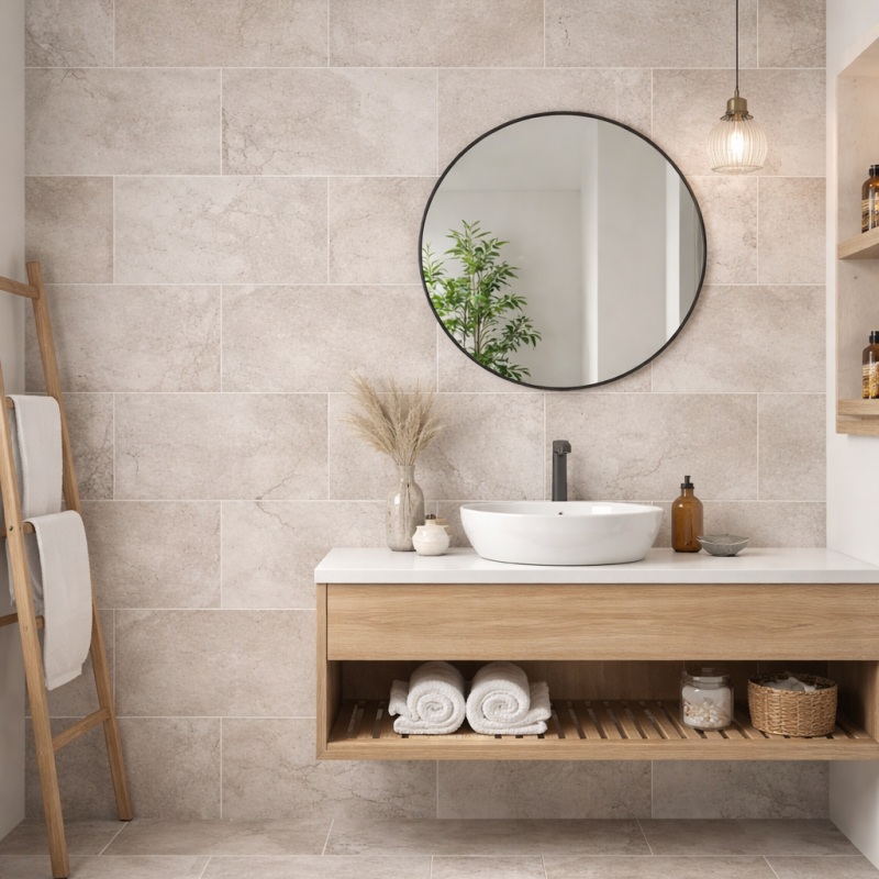 Porcelain material offers solid body density and dependable performance for wall applications. The tile keeps its form and surface quality during long-term use. This supports stable results in continuous interior installations.