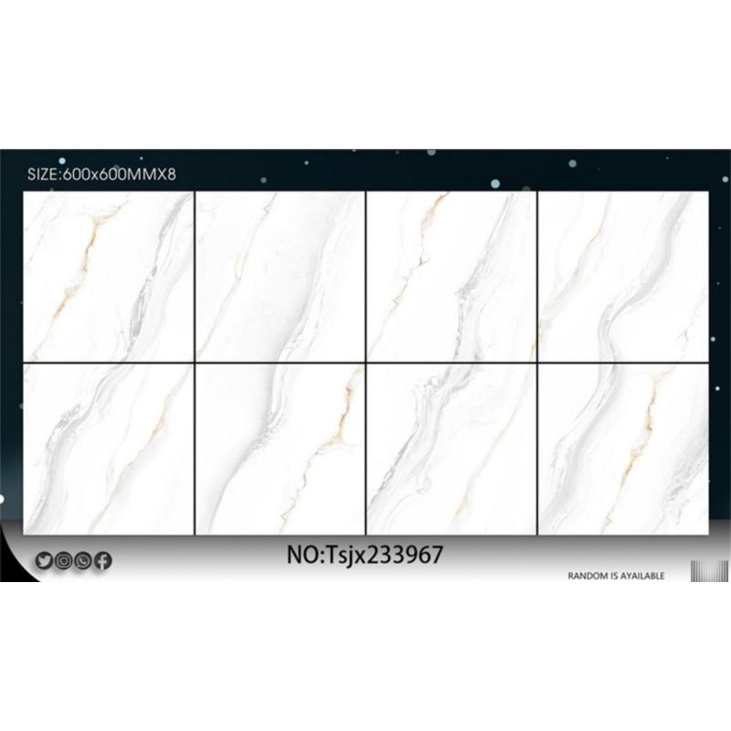 Design to address the problem of interior flooring that lacks brightness and decorative appeal, this tile features a polished surface with a stone-inspired pattern that enhances the overall visual effect. The high-gloss finish helps create a smooth and luminous appearance while supporting reliable daily performance. Suitable for interior flooring in hotels, apartments, offices, showrooms, and other residential or commercial environments.