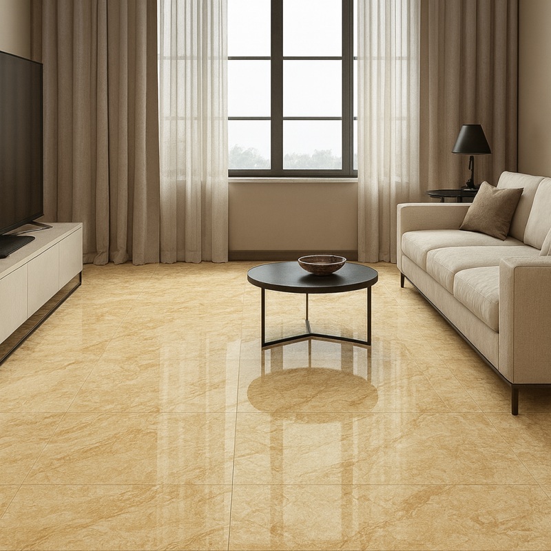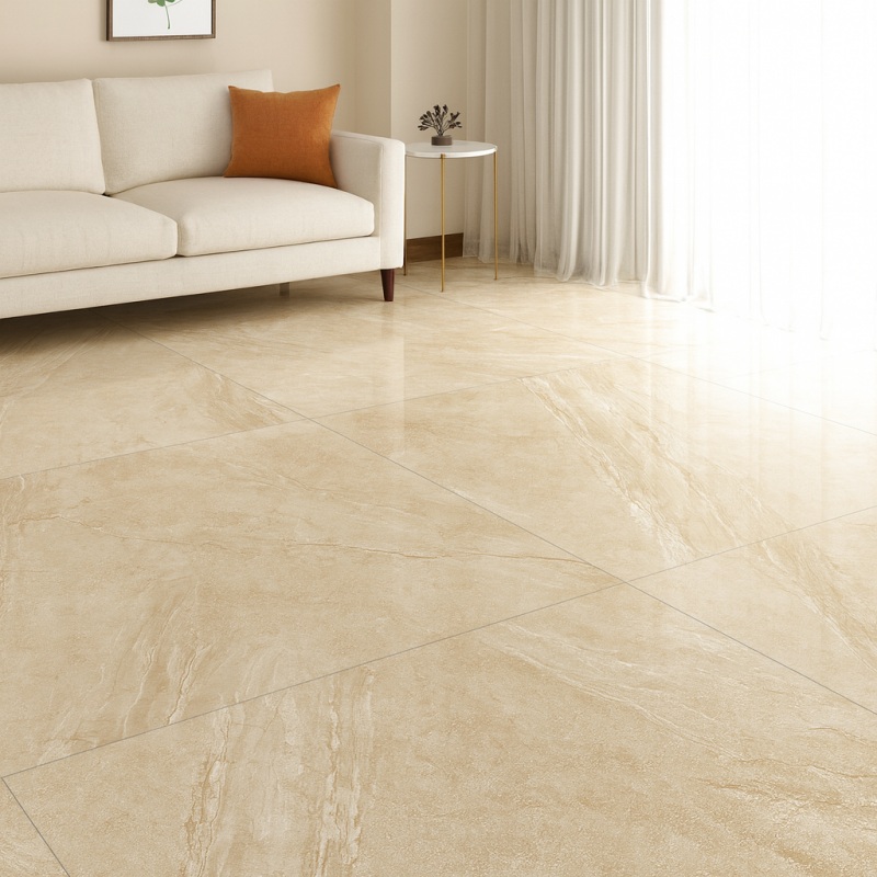 The surface presents a natural marble style with balanced beige tones and soft veins. This visual effect adds warmth and elegance to the space without appearing artificial. It blends easily with modern or classic interior materials such as wood, metal, or glass.